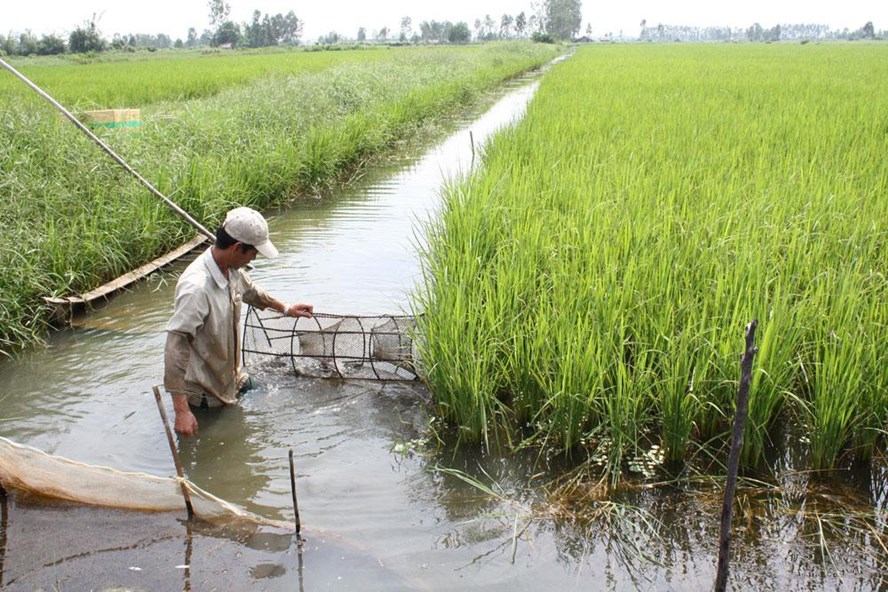 Biến đổi khí hậu đang tác động tới vùng đất mà người dân đã thiết kế cuộc sống và sản xuất của mình dựa trên niềm tin “mưa thuận gió hòa”. Thời gian gần đây, do xâm nhập mặn tăng nhanh, người dân Bạc Liêu phát triển mô hình lúa – tôm. Ảnh: Laodong.