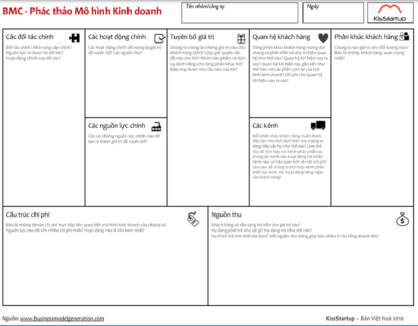 ● Các đối tác chính (thực hiện những hoạt động mà doanh nghiệp không thực hiện, mà thuê ngoài hoặc phối hợp để tiết kiệm nguồn lực và/hoặc gia tăng giá trị cho doanh nghiệp).