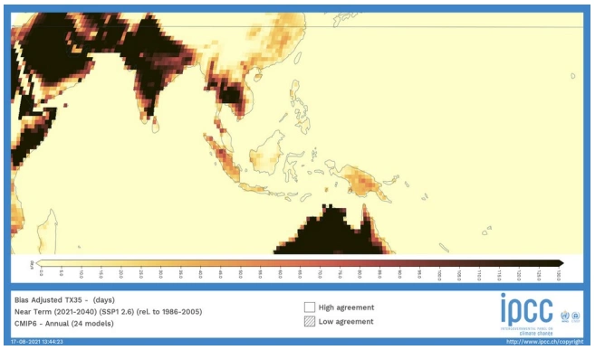 Ở những kịch bản lượng khí thải cao, trong giai đoạn 2081-2100, phần lớn các nước ASEAN sẽ trải qua hơn 130 ngày mỗi năm nóng trên 350C.
