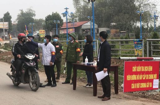 Áp dụng các biện pháp cách ly, kiểm tra thân nhiệt ở xã Sơn Lôi, huyện Bình Xuyên, tỉnh Vĩnh Phúc.Nguồn: Báo Người lao động.