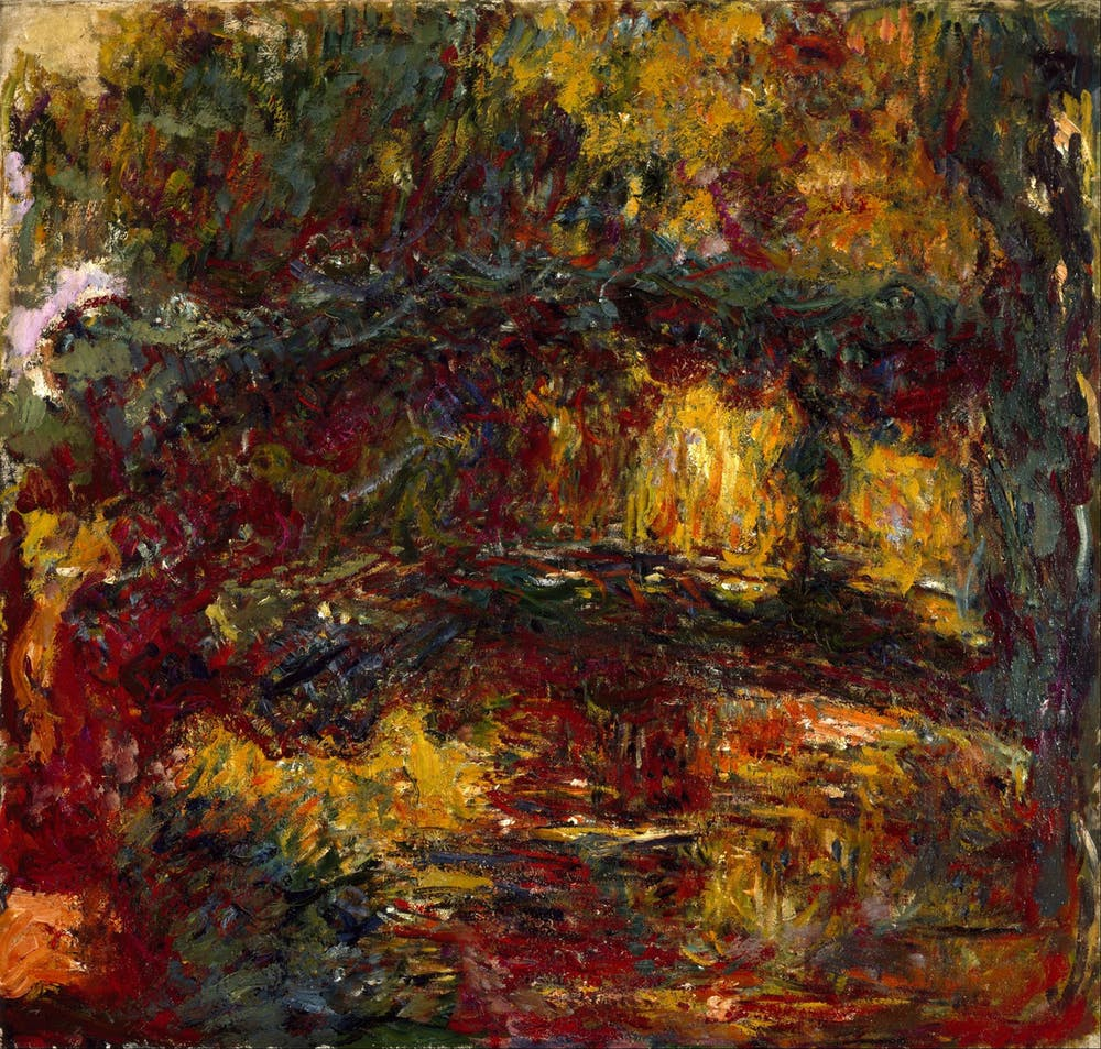 Chúng ta có thể nhận ra tác động của bệnh trong hai bức tranh cùng vẽ một cảnh: cây cầu Nhật Bản trên ao hoa súng trong vườn nhà. Bức đầu tiên được vẽ trước khi ông được chẩn đoán đục thủy tinh thể khoảng 10 năm, đầy chi tiết và màu sắc cũng vô cùng tinh tế.