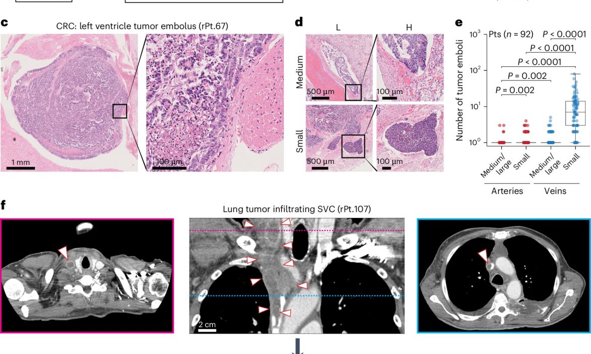 Sự xâm lấn của khối u vào mạch máu và thuyên tắc khối u được phát hiện thông qua việc khám nghiệm tử thi các bệnh nhân ung thư. Nguồn: Nature Medicine