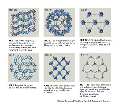 Thay vì để phản ứng hóa học tự diễn ra rồi mong chờ kết quả, hóa học mạng lưới cho phép ta xây dựng vật liệu từ những đơn vị cấu trúc có hình học được xác định trước, giống như lắp ghép các khối Lego phân tử. Mỗi “nút” kim loại (metal node) và “cầu nối” hữu cơ (organic linker) được tính toán để khớp nhau theo nguyên tắc hình học, từ đó hình thành nên vô số mạng tinh thể có độ bền, kích thước lỗ rỗng và tính năng được kiểm soát chính xác. Vật liệu MOF không chỉ có diện tích bề mặt khổng lồ mà còn có thể tùy chỉnh theo mục đích: lưu trữ khí, bắt giữ CO2, lọc nước, xúc tác hay thu hồi nước từ không khí khô.