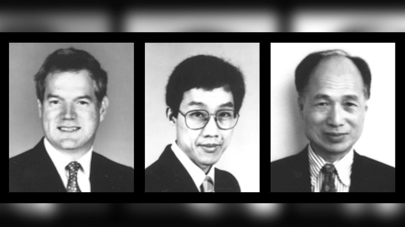 Michael Houghton, Chu Quế Lâm và George Kuo (từ trái qua phải) trong những năm 1990. Nguồn: H. J. Alter & M. Houghton/Nature Med.