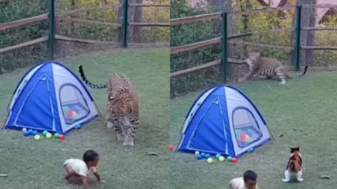 Trong một video lan truyền trên mạng xã hội vào những ngày gần đây, một con báo đột nhập vào sân sau của một ngôi nhà, nơi có một đứa trẻ đang chơi đùa. Một con mèo đã đối đầu với con báo hoa mai, dọa nó bỏ chạy để bảo vệ đứa trẻ. Video đã thu hút hơn một triệu lượt “thích” và hơn 15.000 lượt chia sẻ.