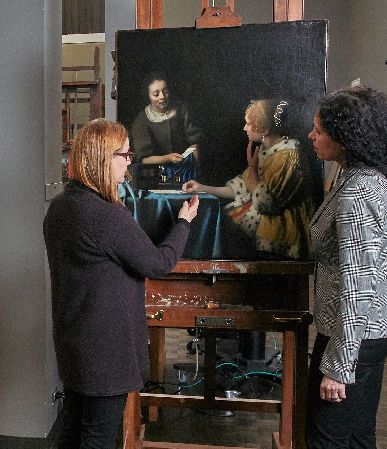 Câu chuyện này chỉ dừng lại khi các nhà khoa học như Silvia Centeno và Dorothy Mahon ở Phòng bảo tồn tranh và Phòng nghiên cứu khoa học (Bảo tàng Met) xuất bản công bố “Johannes Vermeer’s Mistress and Maid: new discoveries cast light on changes to the composition and the discoloration of some paint passages” (Bức ‘Cô chủ và người hầu gái’ của Johannes Vermeer: các khám phá mới rọi ánh sáng vào những thay đổi trong tác phẩm và sự biến màu) trên tạp chí Heritage Science.
