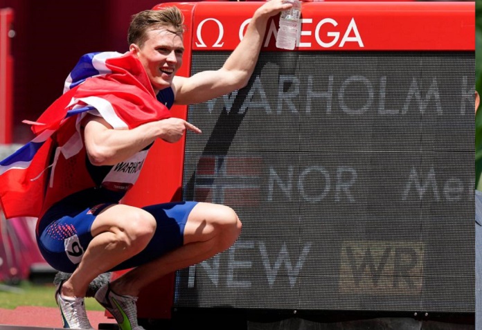 Trong màn lên ngôi của các kỷ lục trong môn điền kinh có vai trò đáng kể của cuộc chiến vật chất trong ngành sản xuất đồ thể thao. Đối với cú chạy tuyệt vời, đôi giầy của Warholm tỏ ra cực kỳ hữu ích. Hãng trang bị đồ thể thao Puma đã kết hợp với các kỹ sư của cuộc đua công thức 1 của Mercedes để phát triển một loại đinh-công nghệ cao. Phần nguyên liệu bên cho phần trên được làm bằng sợi carbon, phần đế cũng là một miếng carbon có thể uốn cong và ngay lập tức trở về hình dáng. "Loại giày này giúp tôi giữ được sức bền lâu hơn để dồn vào cú bung sức ở 100 mét cuối cùng", Warholm đã nói về hiệu ứng này của đôi giầy. Bên cạnh Warholm còn có Andre De Grasse, vận động viên cự ly tốc độ người Canada, sử dụng loại giầy này.