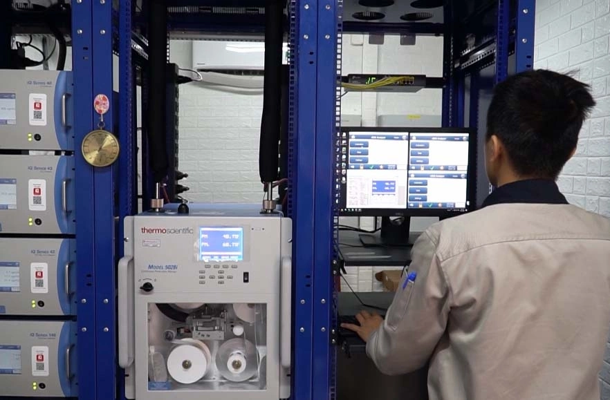 Thiết bị quan trắc chất lượng không khí của cơ quan quản lý môi trường tỉnh Thái Nguyên. Nguồn: Báo Thái Nguyên.