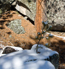 Bên dưới bốn bức tượng Tổng thống, vách đá và rừng thông phủ kín tuyết. Con đường lát gỗ len lỏi dưới vách núi, cho phép du khách tản bộ và ngắm nhìn vách đá với các gương mặt Tổng thống từ nhiều phía, nhiều góc độ, đôi lúc, xuyên qua cả các tán lá thông. Những bông tuyết cuối mùa xuân vẫn rơi nhè nhẹ, lấm tấm trên nền trời. Ven lối đi, những cành thông vươn ra, thậm chí, nhiều chỗ nhành thông như mọc lên từ những tảng đá to nơi chân núi, khiến người ta ngỡ ngàng vì sức sống của chúng...