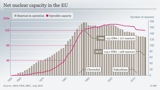 Dẫu sao IAEA cũng chỉ ra rằng, mạng lưới công suất điện hạt nhân của EU đã giảm xuống từ năm 2000.