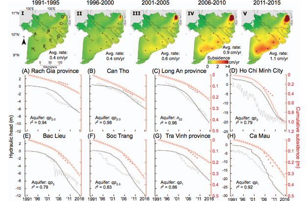Minderhoud, P. S. J., Erkens, G., Pham, V. H., Bui, V. T., Erban, L., Kooi, H., & Stouthamer, E. (2017). Impacts of 25 years of groundwater extraction on subsidence in the Mekong delta, Vietnam. Environmental Research Letters, 12(6), 064006. doi:10.1088/1748-9326/aa7146