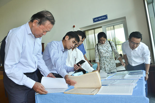 Các nhà khoa học, nhà văn tìm hiểu tác phẩm của nhà văn, chiến sĩ Kiều Thanh Quế được trưng bày tại hội thảo "Thân thế, sự nghiệp nhà văn, chiến sĩ Kiều Thanh Quế" do Ban Tuyên giáo Tỉnh ủy Bà Rịa – Vũng Tàu tổ chức, tháng 12/2019.