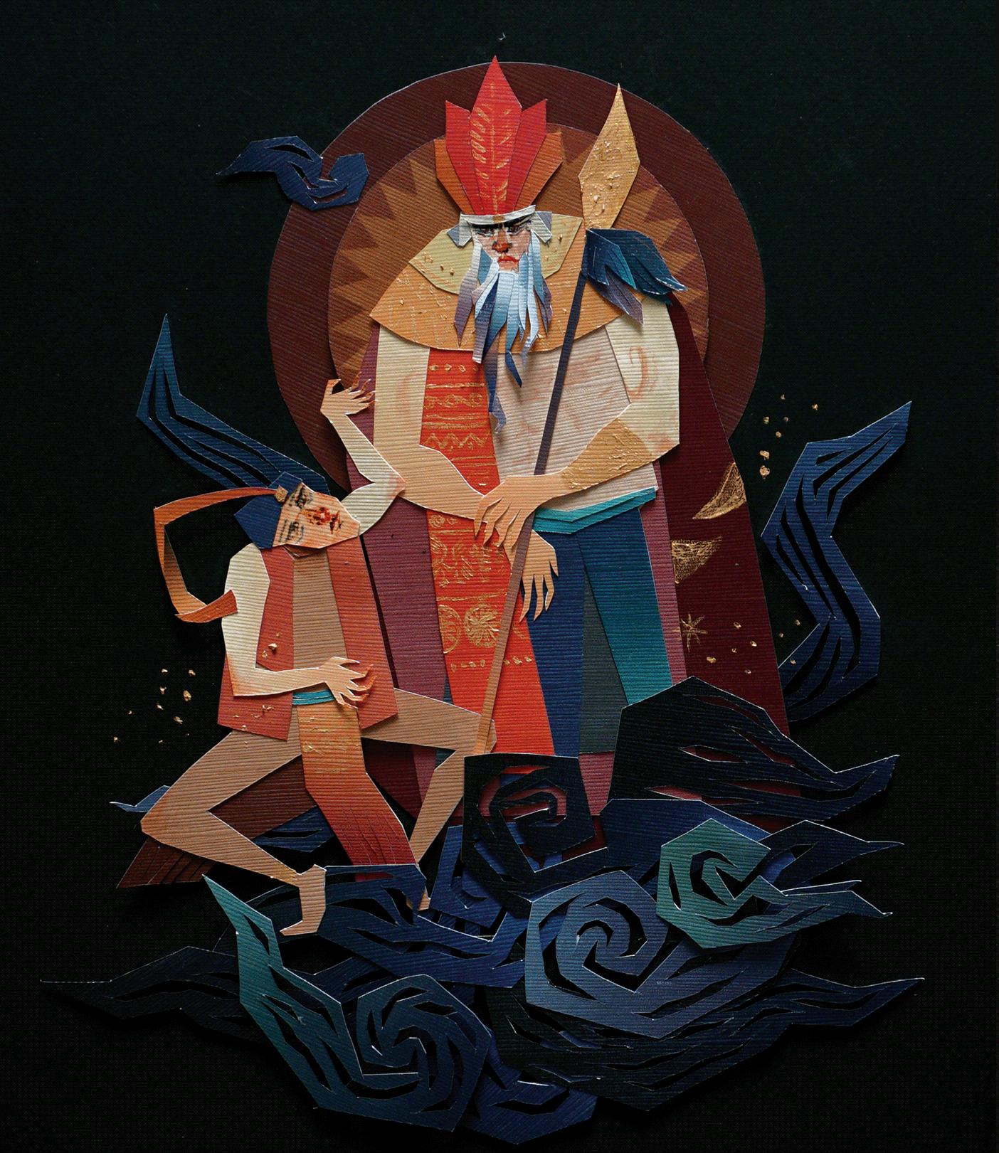 Cuộc chiến giữa Sơn Tinh và Thủy Tinh. Tranh: Tạ Huy Long © Lĩnh Nam Chích Quái, NXB Kim Đồng, 2017