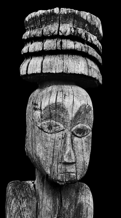 Tượng khuôn mặt ở làng Chăm, huyện Ia Grai, Gia Lai, năm 1986. Nguồn ảnh: vietnam.vnanet.vn.
